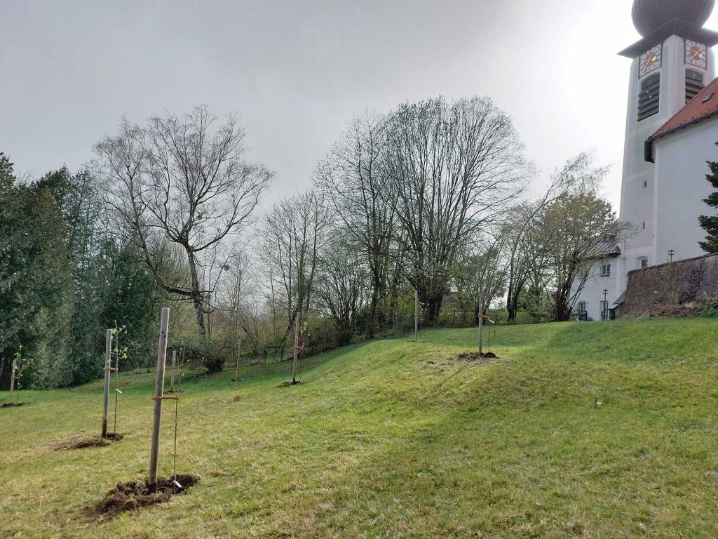 Das Besondere an dieser Streuobstwiese: Sie ist in einer Gemeinschaftsaktion von Kirche, Gemeinde Icking und dem BUND Naturschutz entstanden. Die Kirche hat das Grundstück zur Verfügung gestellt und sich spendabel gezeigt, über die Gemeinde Icking erhielten wir Bäume aus dem Programm „Streuobstwiesen für alle!“ und der BUND Naturschutz Icking hat alles organisiert und gepflanzt.